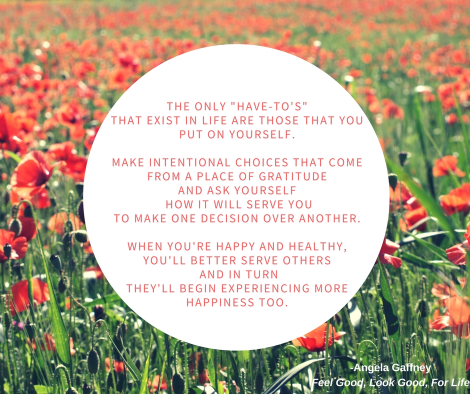 Making intentional choices means you need to Own Your Health. This is all about acknowledging your state of health and recognizing that you have full claim, authority and power to create a healthy body, mind and life for yourself. The only Have-To’s are those that you put on yourself. Are there different choices you want to start making? Your health choices are yours for the taking and now is the time to make it all happen!